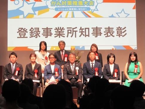 当該登録事業所の中から、従業員やその家族に対し、がん検診の受診を促進するため、がん検診の重要性の理解やがん検診を受診しやすい環境づくり、がんに罹患した従業員が治療を続けながら働くことができる職場環境づくりについて、優れた取り組みを実施している事業所「福岡県がん対策よか取組事業所」として表彰しています。